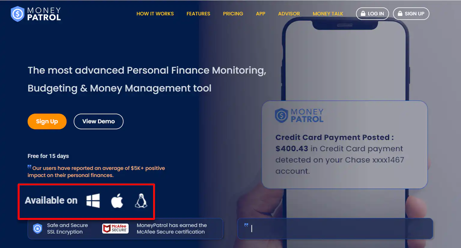 MoneyPatrol is available on Windows, Apple, and Linux. Download these versions, by going to the homepage of the website.